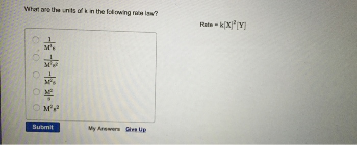 Solved: What Are The Units Of K In The Following Rate Law ...